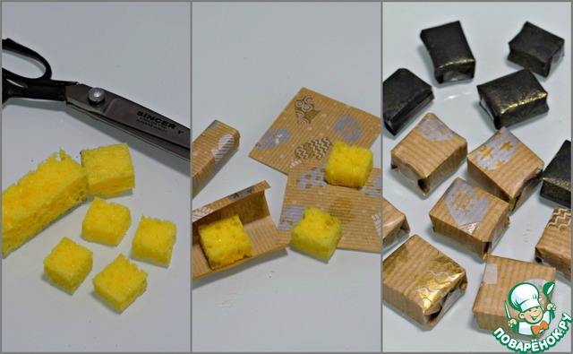 Как сделать гирлянду из бусин, думаю, понятно. Нужно просто нанизать бисер или бусины на нить. А еще можно сделать декор в виде мини-подарков, что кладут под елку. Самый простой вариант - это разрезать обычную губку для мытья посуды на квадратики нужного размера, обвернуть каждый красивой бумагой...