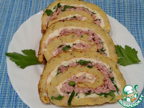 2. Приготовила очень вкусный и интересный "Кабачковый рулет с сыром и ветчиной" Поваренка Ольги "olyaivanchenko75", этот восхитительный рулет очень нежный, сытный, пикантный. Благодаря сыру и ветчине кабачковое тесто совсем по новому воспринимается. Отличная подача: всё, что мы любим, в одном рулете - насыщенный сырно-овощной вкус с ноткой мясного составляющего. Единственное, что я изменила - вместо мягкого сыра взяла адыгейский сыр и кабачковый корж смазала пастообразным плавленым сыром (который в ванночках). Рулет использовала в качестве холодной закуски, он отлично нарезался порционными кусочками - не деформировался и не крошился. Когда я знакомилась с этим рецептом наверное главное, что меня заинтересовало - сформированный рулет не нужно ставить в духовку для запекания с начинкой. Летом я делала кабачковый рулет, по рецепту требовалось поставить в духовку, после того, как сформирован рулет с начинкой. Смело могу сказать, что без повторного запекания кабачковый рулет нам понравился больше. Считаю, что такой рулет подойдет и для праздничного стола. Рекомендую приготовить и порадовать родных и близких. Спасибо, Ольга, за превосходный рецепт.