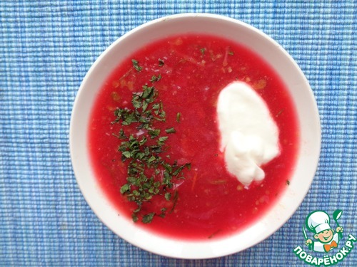 3. Сколько хозяек - столько и рецептов борща. Я права? Но ведь экспериментировать – это всегда занятно. Вкусное и полезное первое блюдо от Машеньки, Поваренка "masha vet" "Хитрый борщ" отличается от других борщей не ингредиентами, а самим процессом приготовления и великолепным картофельным пюре, которое, наверное, и играет не последнюю роль в его вкусе. Главная особенность борща насыщенный цвет и, конечно же, наваристость, кроме того это самый быстрый борщ, который я готовила, ведь овощи предварительно не обжариваются, их необходимо только нарезать и можно сразу приступать к варке. Идеальное сочетание ингредиентов придают борщу индивидуальный вкус, как и кисломолочный продукт - мацони, который мы добавили при подаче на стол вместо сметаны. Сказать, что он получился вкусным – это ничего не сказать. Фантастический борщ. Рекомендую, ведь он получился более легким и менее калорийным. Спасибо, Машенька, за рецепт бесподобного борща.