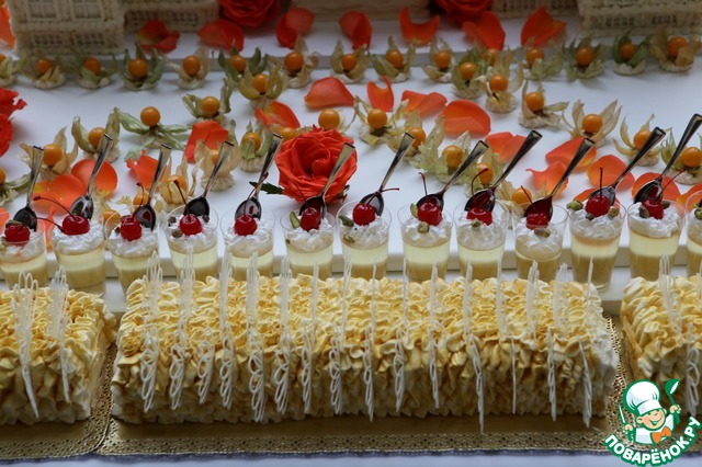 А так же праздничный стол был украшен знаменитым десертом «Шампань», благодаря которой это изысканное угощение сохраняет вкус и аромат шампанского. «Шампань» – любимое лакомство не только королей, но и всей европейской богемы того времени