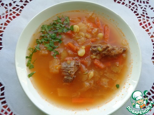 Ссылка на рецепт: "Чечевичный суп с домашней курицей": https://www.povarenok.ru/recipes/show/149148/