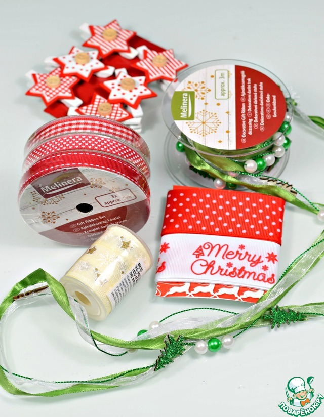 Очень красивые и нарядные новогодние ленточки и тесьма и праздничные украшения в виде звездочек. Обожаю такие штучки.
