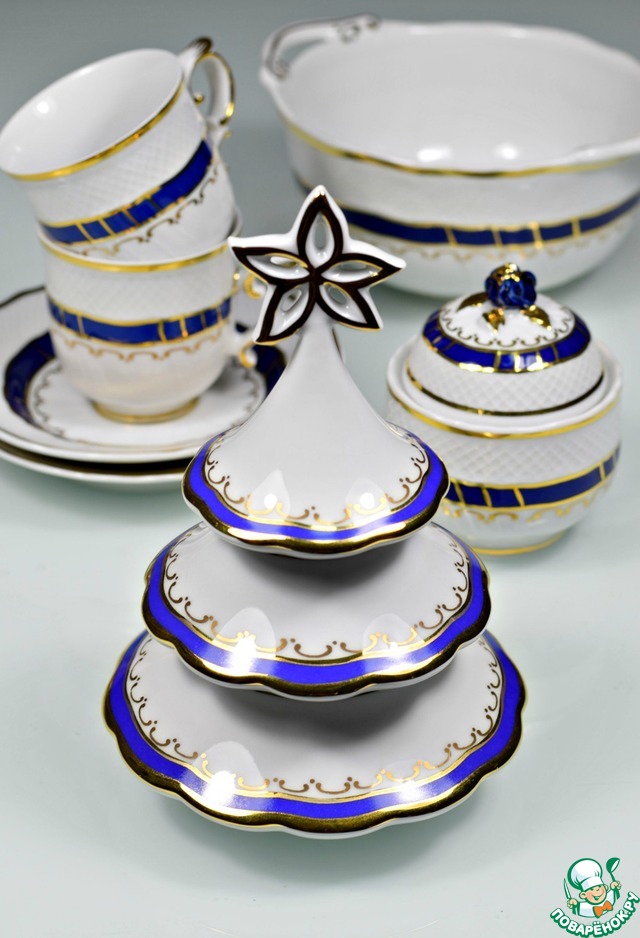 А самое замечательное и приятное, что этот подсвечник-елочка из той же серии посуды, что Ира с Колей присылали нам ранее. Ну как все вместе смотрится? Да шикарно!
