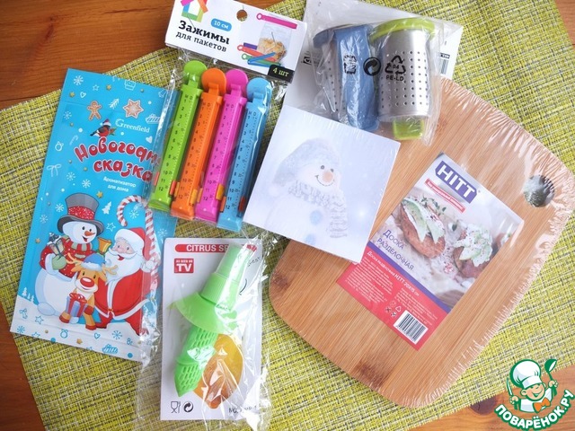 Полезные мелочи для кухни! Нежного цвета салфеточка, зажимы для пакетиков, ароматизатор для кухни, маленькая досочка, спрей-выжималка для лимона, приспособления для заваривания чая и бумага для записей с симпатичным снеговичком!!