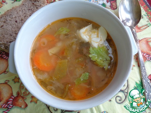 1. Удивительная особенность щей состоит в том, что они не надоедают даже при ежедневном их употреблении, тем более, что рецептов приготовления щей великое множество. Вот на днях я и воспользовалась замечательным рецептом Машеньки Поваренка "masha vet" "Щи из щавеля с капустой". Этот рецепт щей с щавелем обладает всеми основными достоинствами – сытно, наваристо, вкусно, просто и доступно. Щи готовила из щавеля, с использованием своей летней заготовки (рецепт "Пюре из щавеля"). Рекомендую витаминные и весьма полезные щи. Спасибо, Машенька, за прекрасный рецепт.