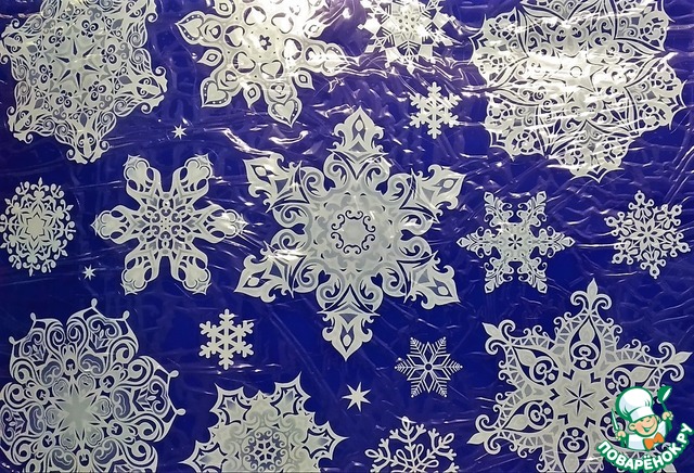А это резные снежинки на клеевой основе! Наклею их на зеркала - пусть создают новогоднее настроение!