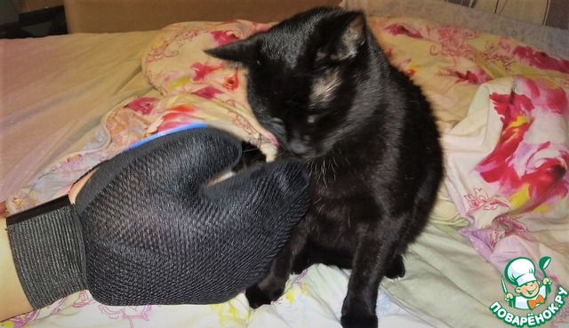Даже Кими получил подарок - перчатку для вычёсывания шерсти. Нам не сразу удалось его погладить, так как коту было очень важно её обнюхать и длилось это около 20 минут.