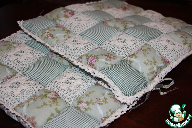 А это накидушечки на табуреты, на стулья. Разбойнику нашему отдала. Он поросенок еще тот.