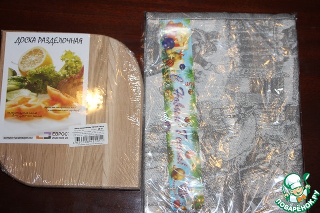 Льняное полотенце и разделочная досочка, на разок. Очень удобно для утренних бутербродов.
