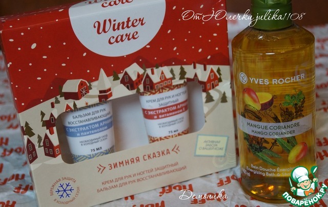 Средства для красоты: набор "зимних" кремов для рук и "вкусный" гель для душа.