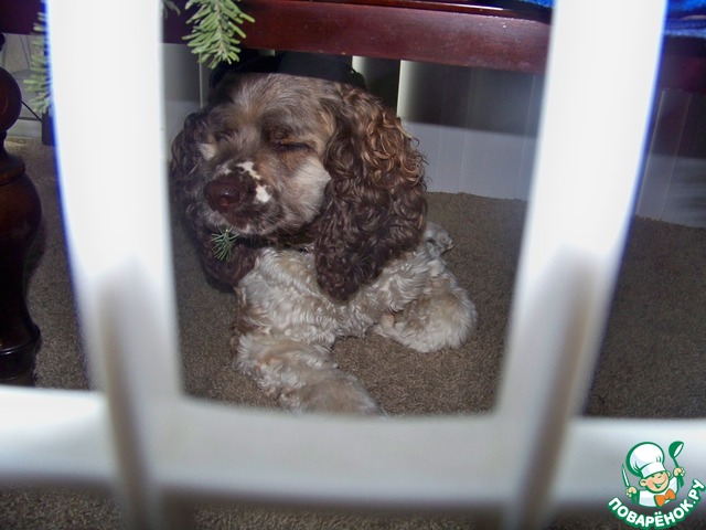 Да,после праведных трудов..,умаявшись,Грейси отдыхала,уединившись под ёлочкой(меня и Бенжи не пустила