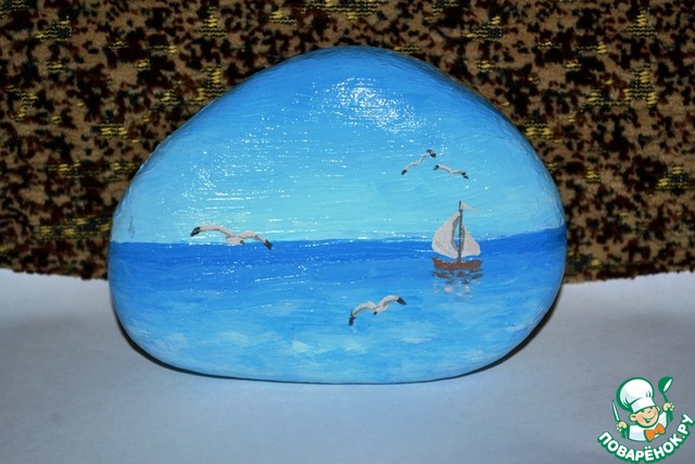 Вот и пришлось разрисовывать камни в морских мотивах. А так, как художник из меня не айс, то получилось то, что получилось.