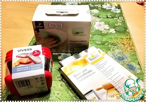 А вот и содержимое сюрпризов! Здорово как! Совершенно замечательная - от восторга и забыла, как же эта штука по-русски называется? - подстилка для раскатывания теста. Видела такие в использовании, но самой такое чудо не попадалось. А теперь попалось!
