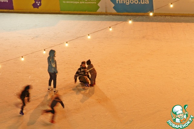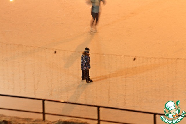 Когда всё-таки с боем и плачем малышню уводят домой, на каток выезжает такая машинка, приводит ледовую поверхность в божеский вид. Это происходит минимум три раза - утром, днём, вечером, всё зависит от количества желающих покататься...