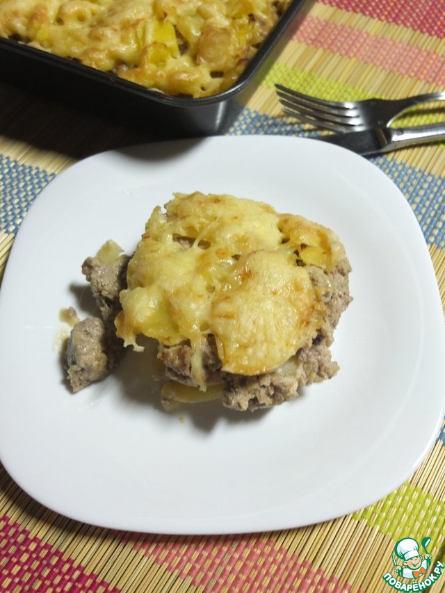 Вкусное, простое блюдо! Картофеля у меня было меньше , фарша побольше. Запекала в духовке и поспала сыром. Буду повторять!