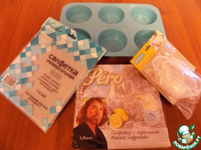 Мелочи для кухни: форма для кексов силиконовая, крышки, салфетки, бумажные салфетки. Впервые вижу такие бумажные салфетки с рисунками Никаса Сафронова.