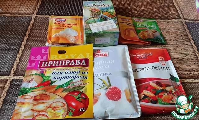 Зеленый ароматный чай, приправы и всякие разности для выпечки.