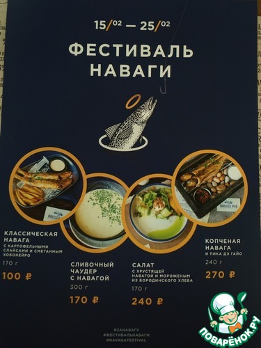 В меню этого ресторана 3 фестивальных блюда. По факту в наличии было 2. Крокеты из наваги отсутствовали