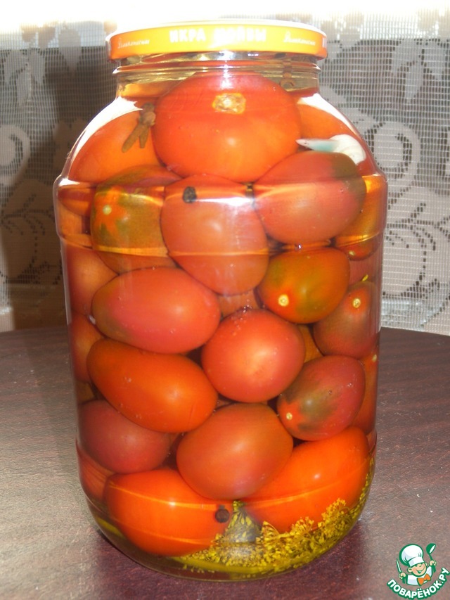 Первый раз сделала на пробу одну баночку ещё в 2016 году. Всё строго по рецепту. Меня немного смутило количество сахара. (Не будут ли они сладкими. Но сделала как в рецепте. Зимой узнаем, вкусно или нет... ) Теперь делаю такие помидоры в обязательном порядке. Очень вкусные!!!