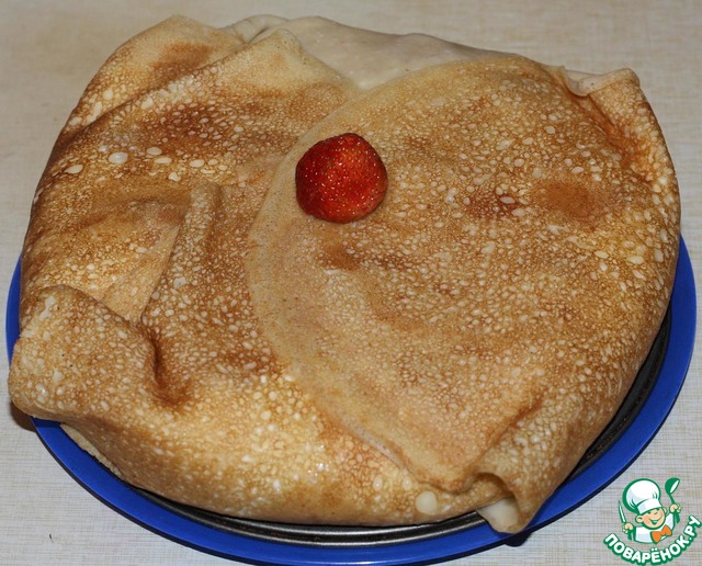 А еще был блинный торт. Начинка с кримчизом, рикоттой, йогуртом и клубникой.