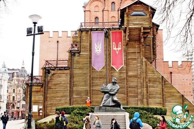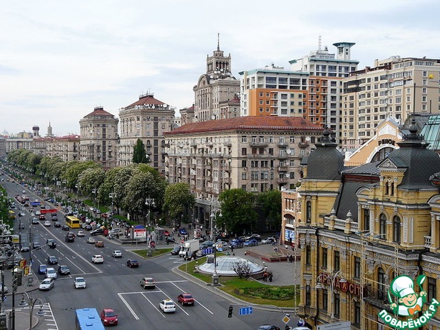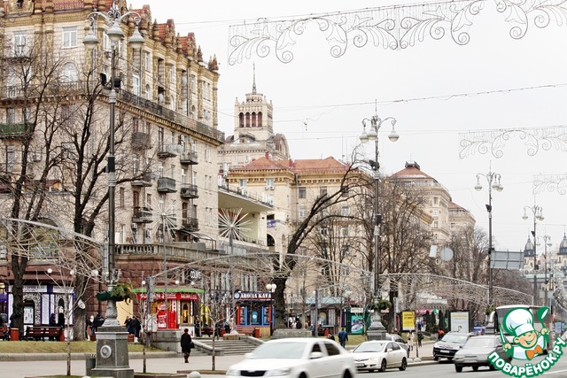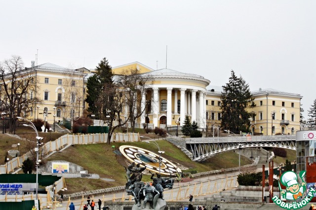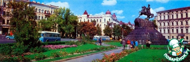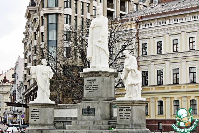 "У подножия самой высокой горы на склонах Днепра поражает взгляд так называемый Крещатик. Это купель, в которой Владимир крестил киевлян. Она украшена памятником."