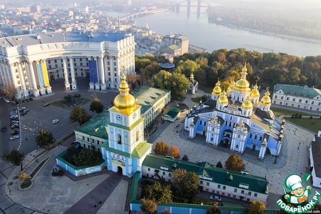 Пройдя Десятинную, вышли на Михайловскую пощадь. Михайловская площадь, одно из старейших мест в Киеве. Прежде всего, это площадка перед Михайловским собором, посвященным небесному покровителю Киева – Архангелу Михаилу. Сформировалась она в ХІІ столетии перед въездом в Михайловский Златоверхий монастырь.