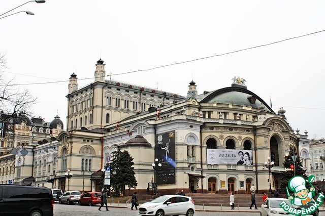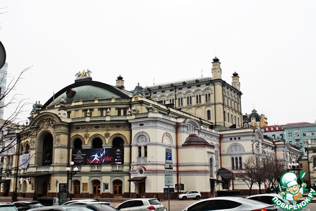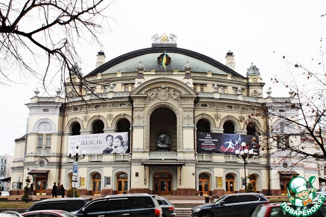 Пока нелёгкая носила меня по Крещатику, солнце неумолимо начало клониться к закату, как и аккумулятор фотоаппарата. Решив поберечь силы и батарею, я потихоньку направился в сторону метро, перекусил знаменитой у нас "киевской перепичкой" - банальной сосиской в тесте, но до безобразия вкуснющей, за которой всегда стоит пятидесяти метровая очередь, невзирая на время года и огромное количество всевозможных точек фастфуда, кафешек. Путь я проложил через ещё одно очень красивое здание - Киевская опера.