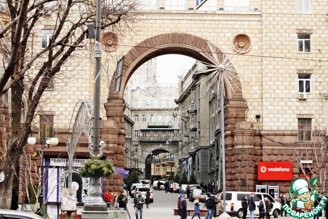 В советские времена, в этой арке находилось много магазинов под общим названием "Пассаж". Он был очень популярен среди киевлян. Во времена всеобщего дефицита, здесь был весьма не плохой ассортимент непродовольственных товаров. Моя мама, в августе, собирала меня в школу именно в этих магазинах.