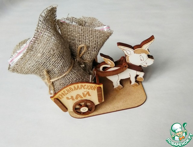 В это чудо я влюбилась ещё видя его упакованного в пленку-пупырку! Замечательный чайный ослик!!! Я не так давно думала купить чайный домик, но так его ещё не купила, у меня их не продают, если только из другого города можно заказать... А тут такое! Такое! Такое! Потрясающий чайный ослик!!! Который везёт крупнолистовой чаёк в чудесной тканевой упаковочке!