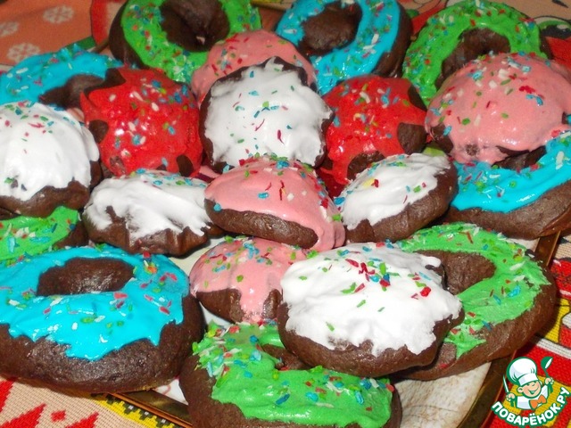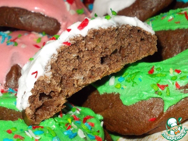 3."Имбирные пряники в форме колец" по рецепту поваренка Храмова Жанна. Отличные пряники! Быстрые! Вкусные! Мягкие! Мое отступление от оригинала это то, что я добавила какао... Ну и глазурь у меня другая... Надо было остатки айсингов использовать! Вот и пустила их в ход! Очень стоящий рецепт!