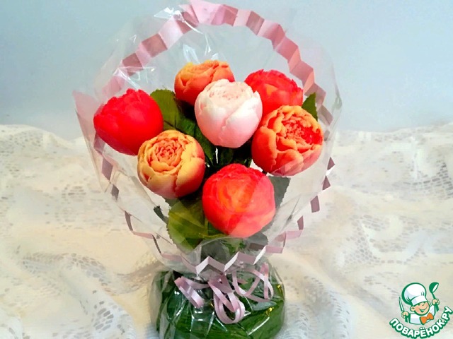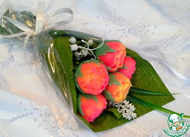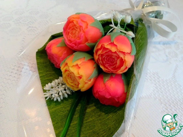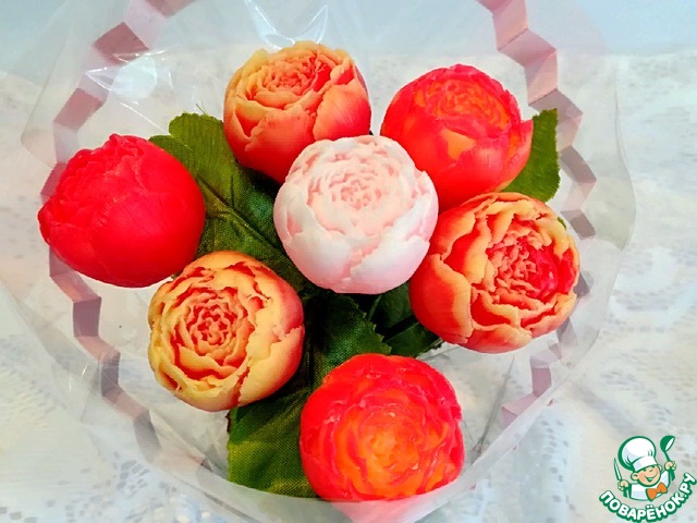 Это всё благодаря мужу - я уж было передумала сначала заниматься мылом, но муж поддержал. Заказали всё, что нужно. А когда я целыми днями была погружена в творческий процесс, ходил в магазин, покупал продукты, готовил еду. Ещё и сам два букета создал. Поддерживает меня и словом, и делом.