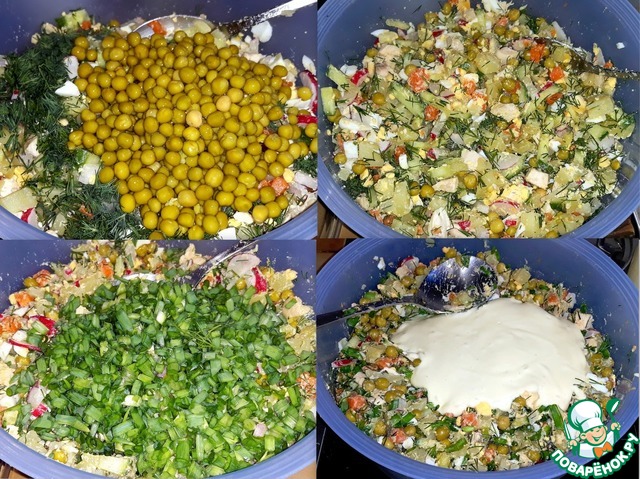 семьях тоже. Делала салат, как обычно, но добавила редиску