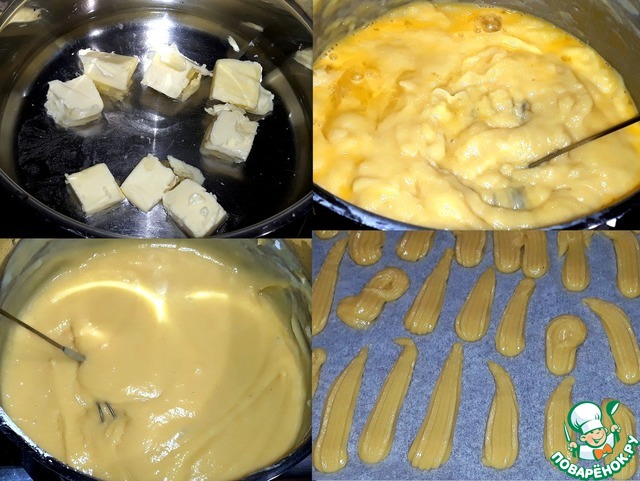 желтками яиц. Получились хвостики , т. к тесто не отделялось