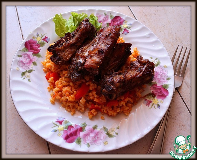 Запеченные ребрышки с гарниром от кулинара Дзинь.Очень хорошие ребрышки.Мариновала недолго и на гарнир - булгур.Вкусно!