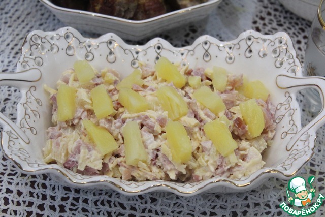 Салат с ананасом и картофелем по рецепту Катюши kotenochkin https://www.povarenok.ru/recipes/show/154394/