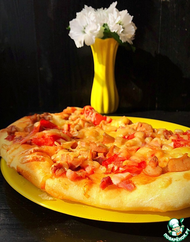 Вкусная, не хлопотная пицца. Без моцареллы, кто то ее слямзил)).