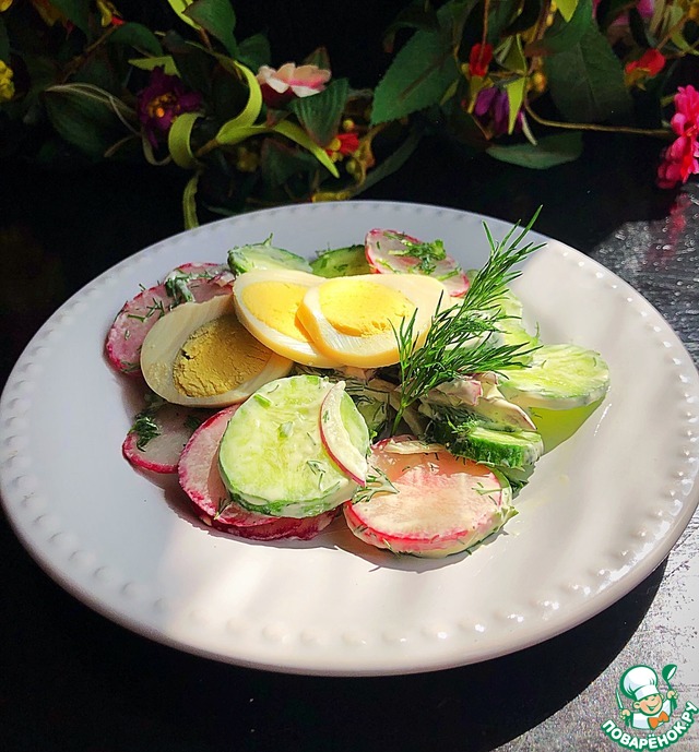 Яичный салат с ветчиной и редисом https://www.povarenok.ru/recipes/show/124378/