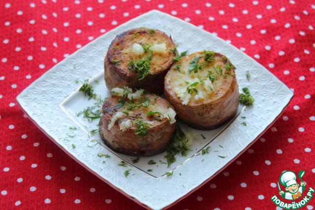 Ну конечно же, такая картошечка настолько соблазнительна, что невозможно пройти мимо. Вот и я не смогла. Приготовила на ужин. Чудесная, с тонкой корочкой и рассыпчатостью внутри! А какая ароматная с чесночком и зеленью!