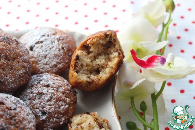 И снова семья просит штучную выпечку. Все продукты были в наличии, вот и испекла. Вкусно, просто, быстро. Пекла 25 минут. Вместо шоколадных капель брала шоколад. Шоколад мелко нарезала и смешала с мукой.