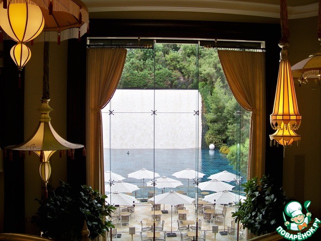 К сожалению, ночные фото-картинки озера не могу показать. Зато, с удовольствием покажу красоту внутреннего убранства отеля Винн. Интерьер залов сказочно красив.