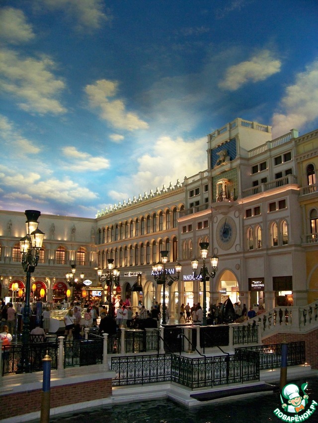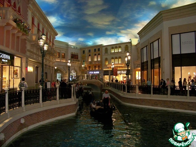 "Венеция" полностью оправдывает своё название - это копия Венеции в миниатюре. Здесь есть достопримечательности Венеции-площадь Святого Марка, колокольня и мост Риальто, а также рукотворные каналы, по которым проплывают настоящие гондолы, привезённые из Венеции, с поющими итальянские песни гондольерами и восторженными туристами Лас-Вегаса.