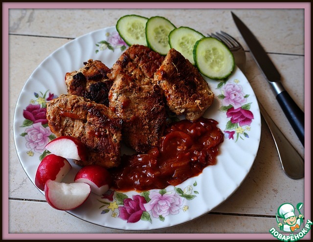 Мясо "Иллюзия гриля" от кулинара Клюква в сахаре.Очень и очень понравилось мяско.Вкусное,мягкое.Приготовила к нему соус "Барбекю",а еще свежие овощи и это просто красота!
