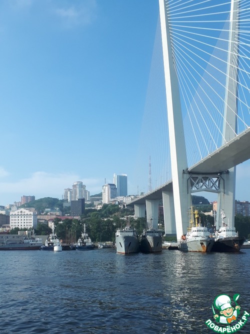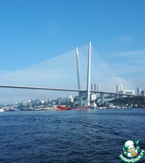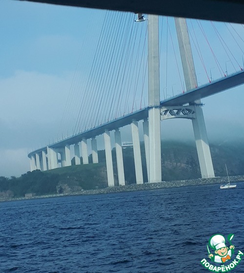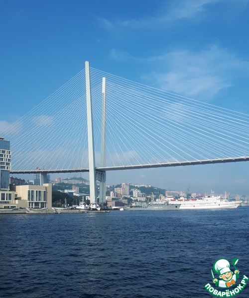 Мост на остров Русский,где располагается кампус ДВФУ,также все это было построенно 2012 г к Саммиту.Этот мост получил название"Русский",по названию острова.