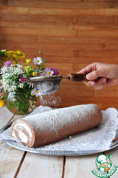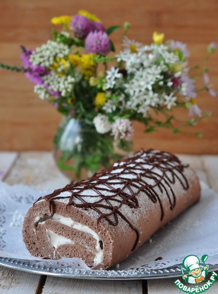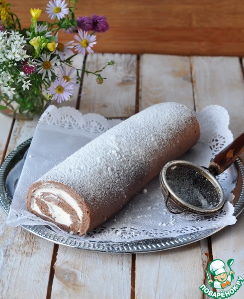 Мастер-класс "Шоколадный бисквитный рулет с кремчиз".