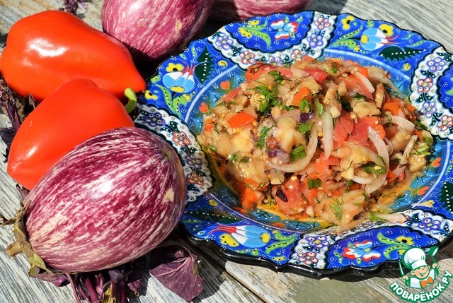 Частенько готовлю такой салат, именно из печеных баклажанов и перца,
