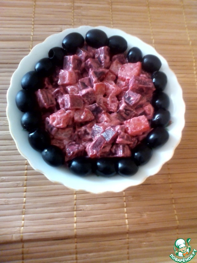 На этот раз хочу предложить вам отличный и очень вкусный салат из картофеля , свеклы и маслин от Наташеньки (LNataly).