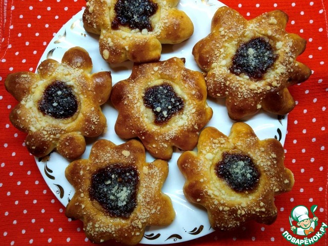 Булочки «Цветочки» с творогом и конфитюром по рецепту Танюши mtata https://www.povarenok.ru/recipes/show/160150/