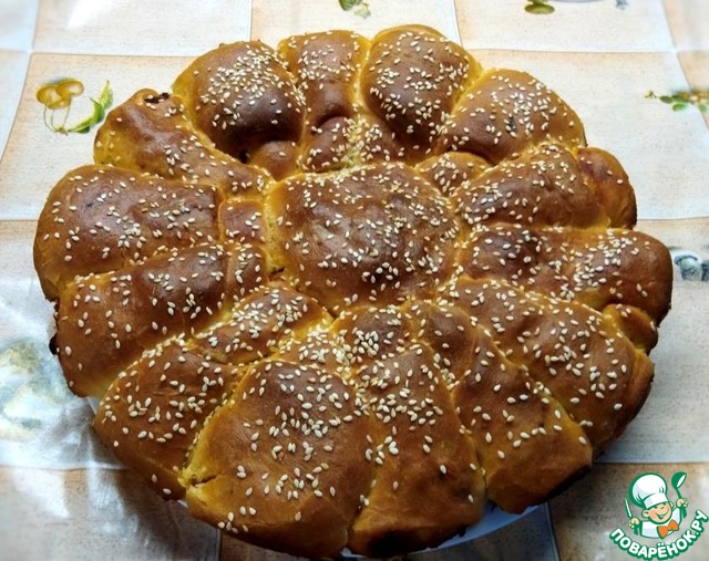 Восторг!!! Это то впечатление, которое получила вся семья от дегустации. Начну по порядку. Делала все по рецепту, но с отступлениями. Муки добавила на 40 г больше, дрожжи сухие 1 ч. л, вместо конфитюра у меня яблочное повидло. Замес в ХП. Тесто получилось таким живым, приятным в работе, ну ооочень нежным и воздушным. Не скрою, сначала формовка не очень удавалась, но на третьем противне уже лепилось легче. Очень выручил шпатель, которым было удобнее резать лепестки, предварительно обмакнув его в муку. В общем, теперь в следующий раз дело пойдет намного быстрее, так как опыт уже есть. Выпекала 17 минут при 180 градусах. Рецепт забираю в Золотую коллекцию!!!