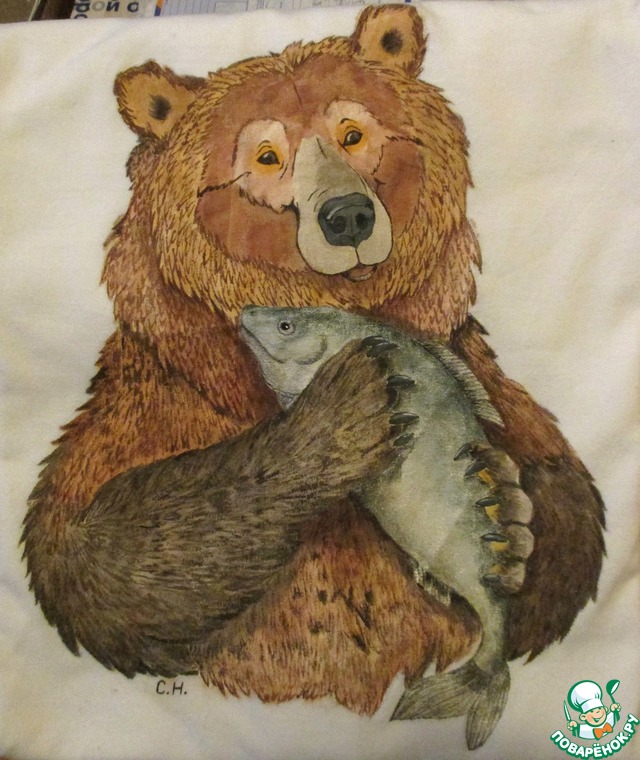 Вот и получился Мишка с рыбкой)Рыбка серебристая,фото не передало этого.