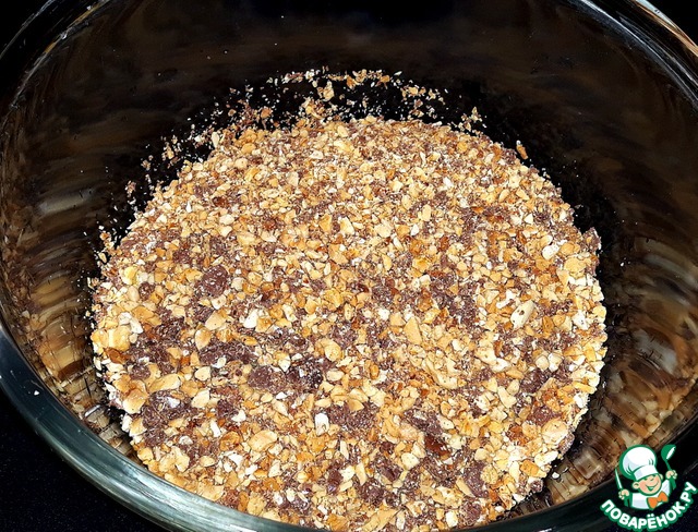 Поджаренный арахис не очень мелко измельчила вместе с шоколадом.